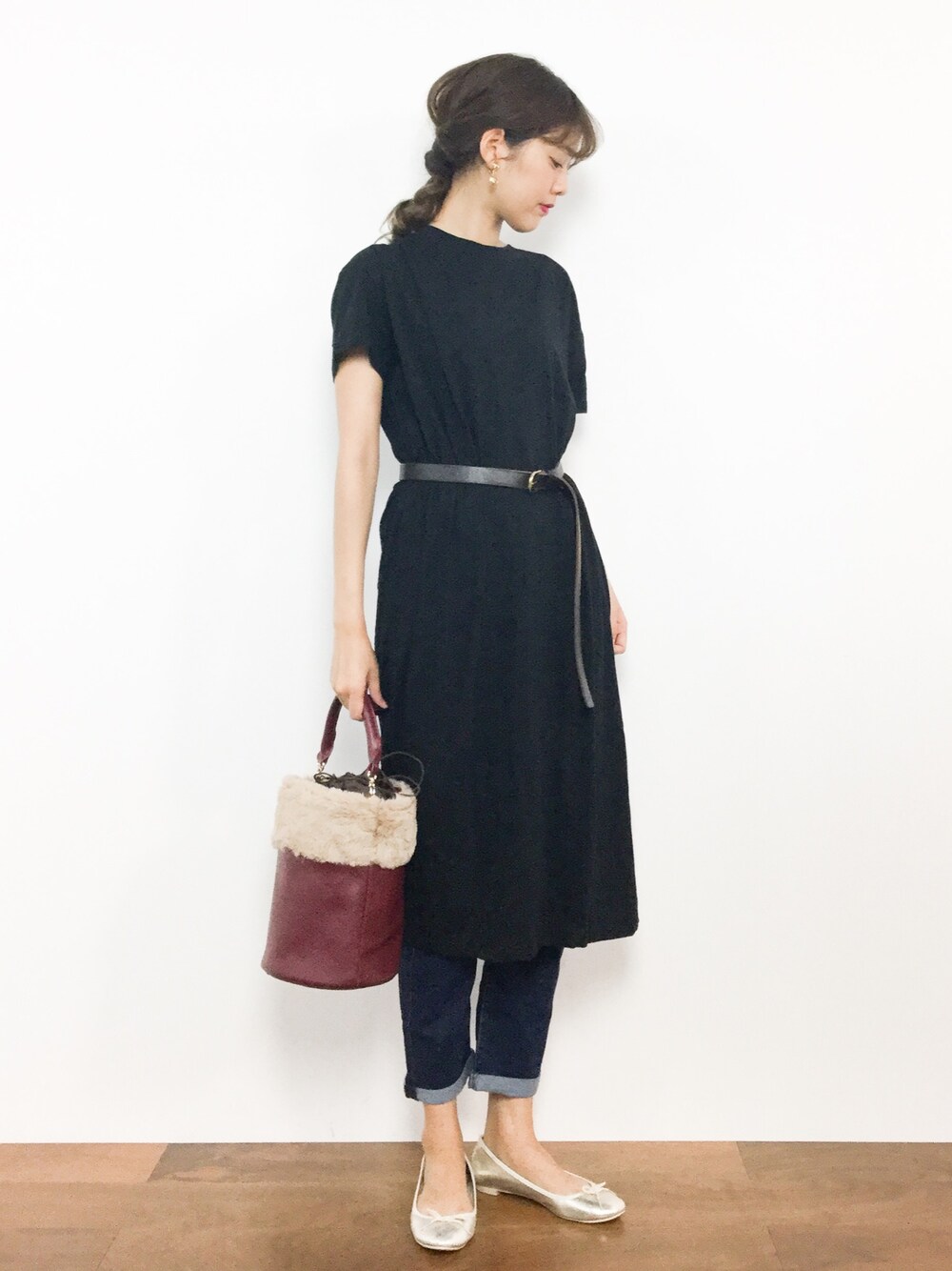 yuki(ZOZOTOWN)のショルダーバッグ「IEDIT 選べるストラップがうれしい エコ ファー付きバケツ型トートバッグ」を使ったコーディネート