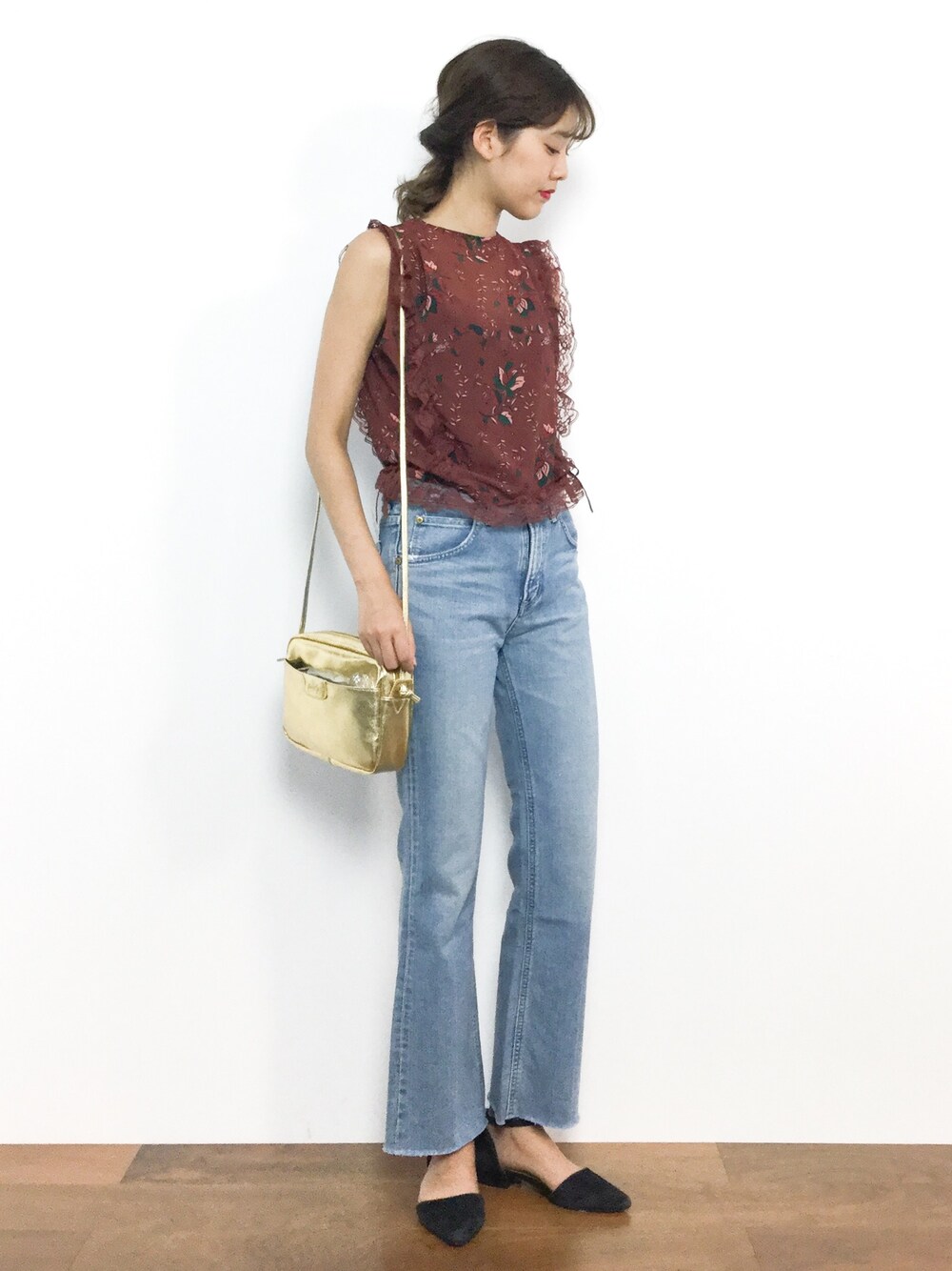 yuki(ZOZOTOWN)のタンクトップ「SHEER ROSE LACE TOPS」を使ったコーディネート