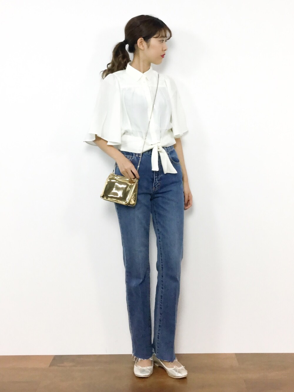 yuki(ZOZOTOWN)のシャツ/ブラウス「FLARE SLEEVE CROPPED SH」を使ったコーディネート