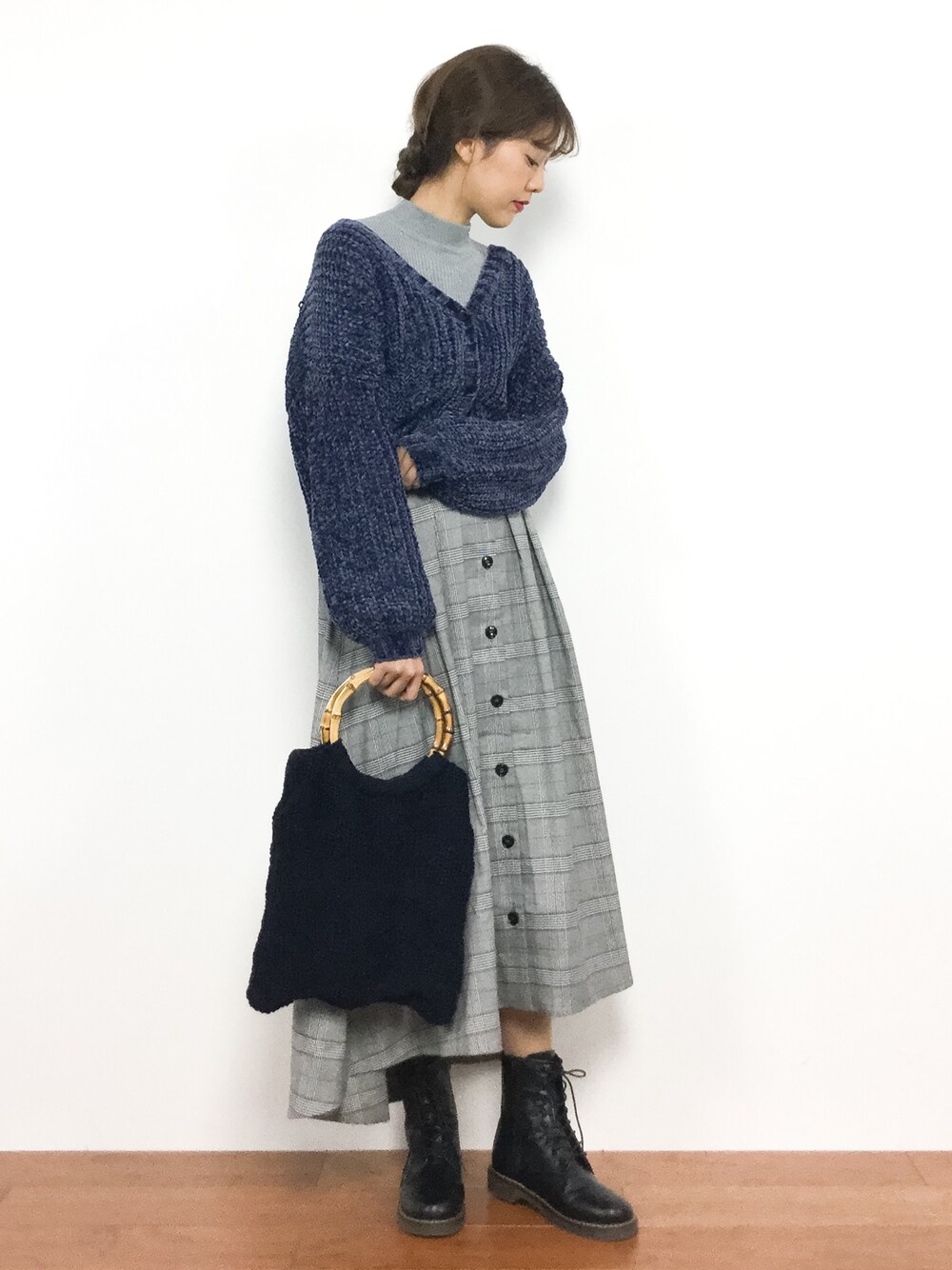 yuki(ZOZOTOWN)のショルダーバッグ「バンブーハンドルニットBAG」を使ったコーディネート