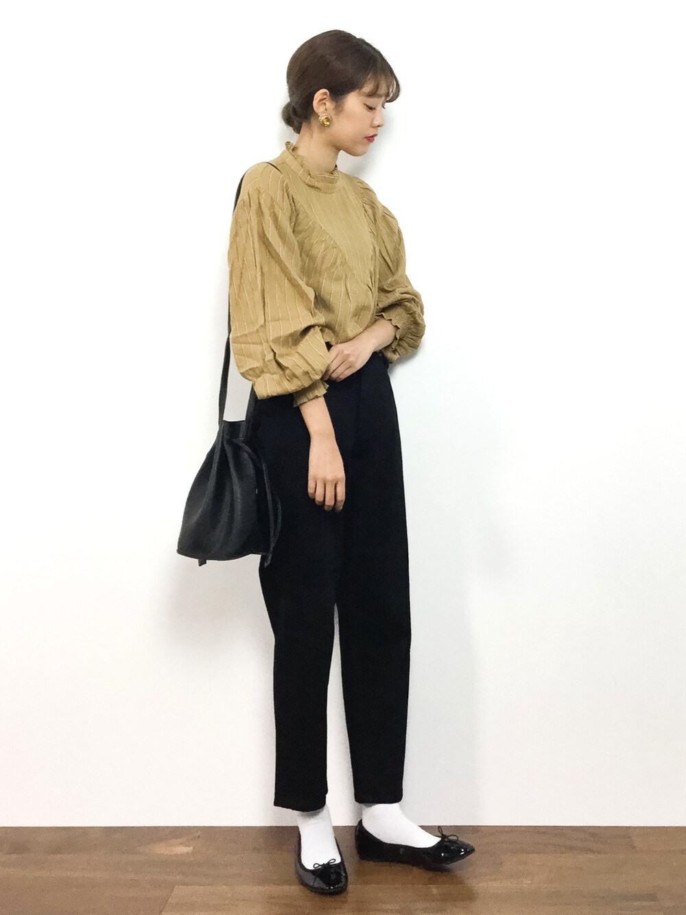 yuki(ZOZOTOWN)のシャツ/ブラウス「KBF+ ハイネックストライプブラウス」を使ったコーディネート