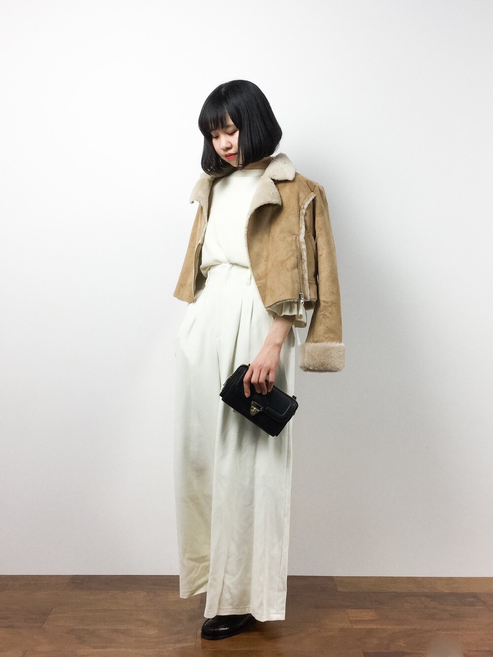 hina(ZOZOTOWN)のその他パンツ「ハイウエスト4タックワイドパンツ(オフホワイト)/ AEBC H/W 4TUCK WID OFF◆」を使ったコーディネート