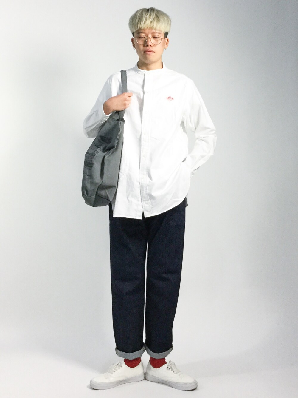 白シャツ×デニム!! 王道コーディネート。 シンプルに白シャツとデニムを組み合わせた、ストリートコーディネートです。 こだわりは、Dantonのシャツの良さを出すために、全体的に色、アイテム共に無難なものを選んだこと。 唯一ソックスで色味を加え、軽くアクセントを足しています。 ▼staff spec 身長:178cm、体重:55kg 頭周り:57cm 肩幅:40cm、胸囲:80cm、胴囲:82cm ウエスト:80cm、ヒップ:85cm、股下:88.5cm、もも周り:46cm 靴:26.5cm、足長:25.5cm、足囲:23cm、足幅:10cm、甲周り:25cm