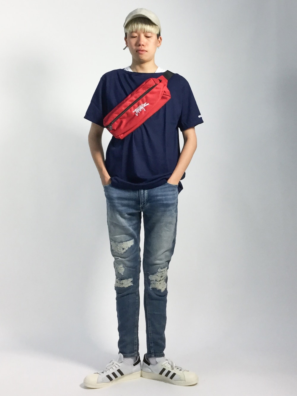 まっこい(ZOZOTOWN)のデニムパンツ「Oblekt / ダメージデニムイージーパンツ」を使ったコーディネート