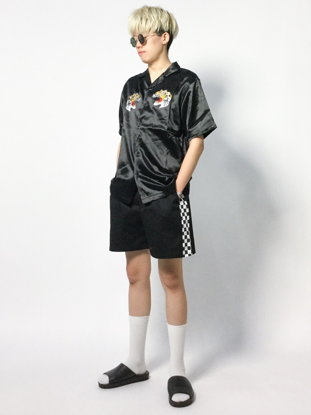 オールブラックで固めた、ストリートコーディネートです。 サングラス、オープンカラーシャツ、サンダルなど、季節感のあるアイテムを多く使い、 夏らしさを表現しました。 また今回着用しているショーツが、ただいまZOZOTOWNにてセールになっております! 大変お求めやすい価格なので、このサマーセール期間中に、ぜひぜひチェックしてみてください!! ▼staff spec 身長:178cm、体重:55kg 頭周り:57cm 肩幅:40cm、胸囲:80cm、胴囲:82cm ウエスト:80cm、ヒップ:85cm、股下:88.5cm、もも周り:46cm 靴:26.5cm、足長:25.5cm、足囲:23cm、足幅:10cm、甲周り:25cm