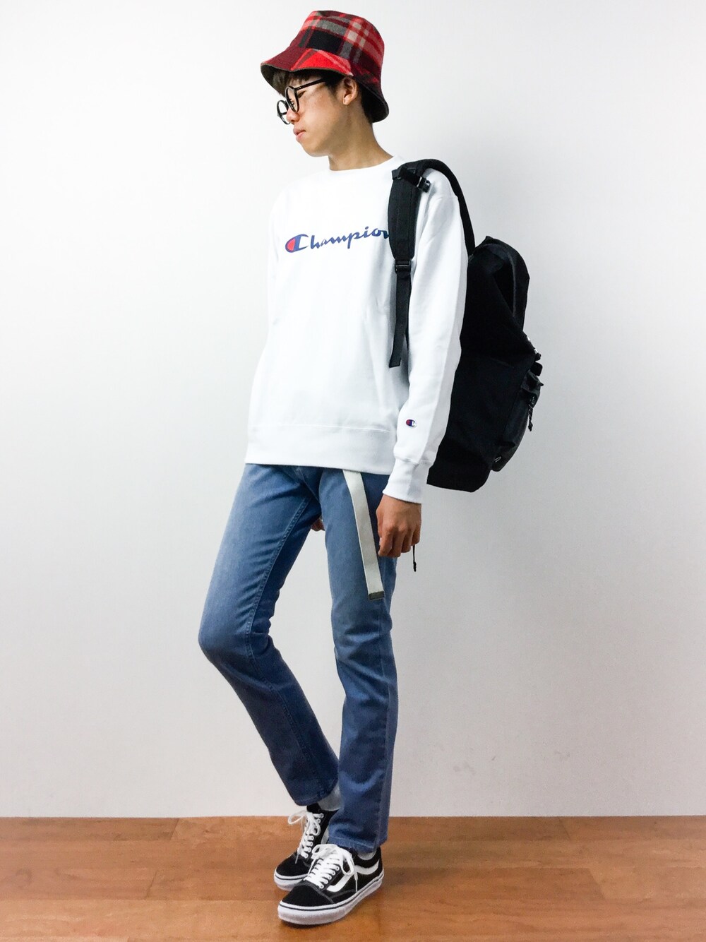 まっこい(ZOZOTOWN)のスウェット「WEGO/Championプリントプルオーバー」を使ったコーディネート
