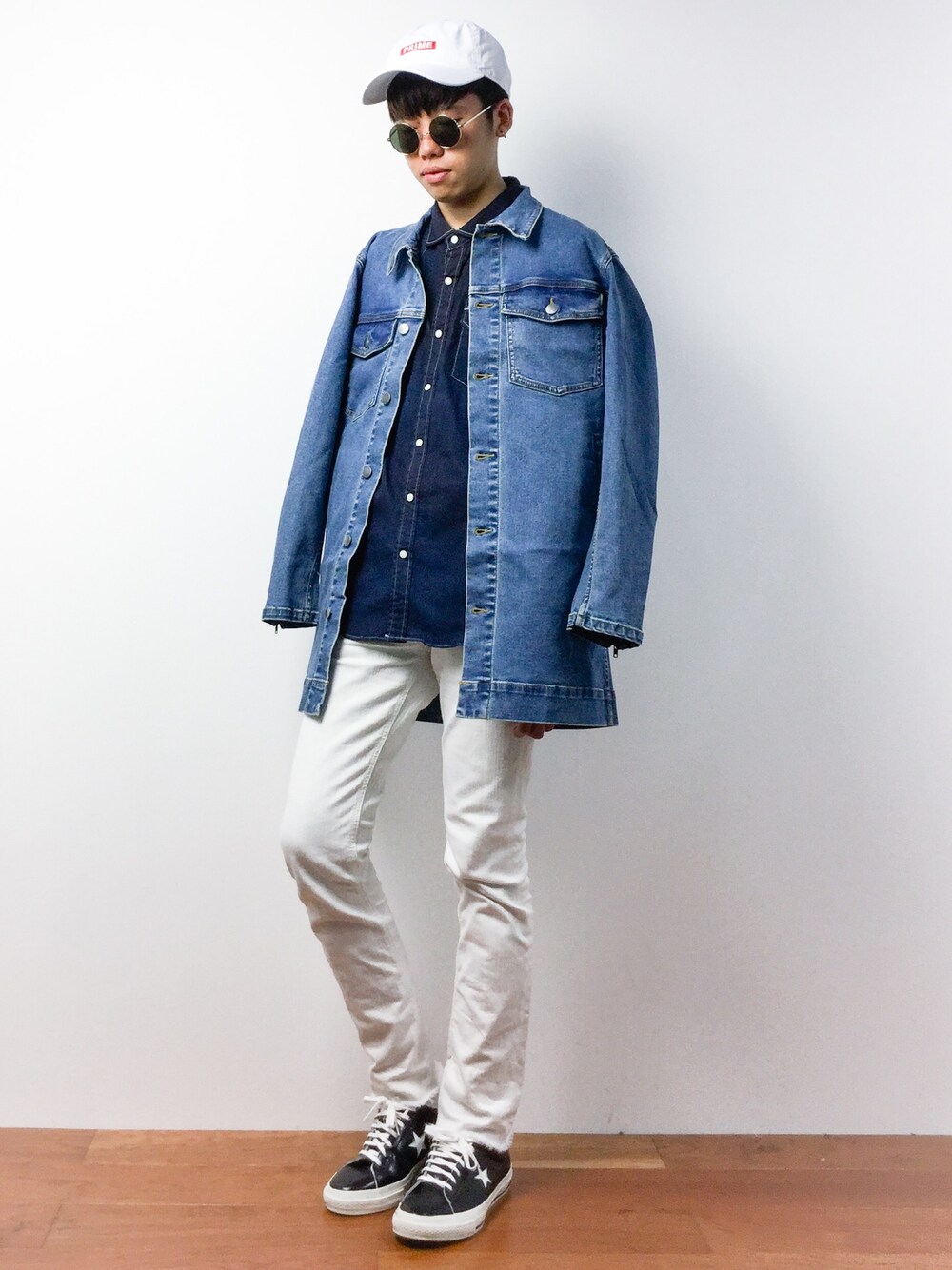白と青系でまとめた、デニムオンデニムコーディネートです。 ▼staff spec 身長:176cm、体重:58kg 頭周り:57cm 肩幅:40cm、胸囲:80cm、胴囲:82cm ウエスト:80cm、ヒップ:85cm、股下:91cm、もも周り:46cm 靴:26.5cm、足長:25.5cm、足囲:23cm、足幅:10cm、甲周り:25cm