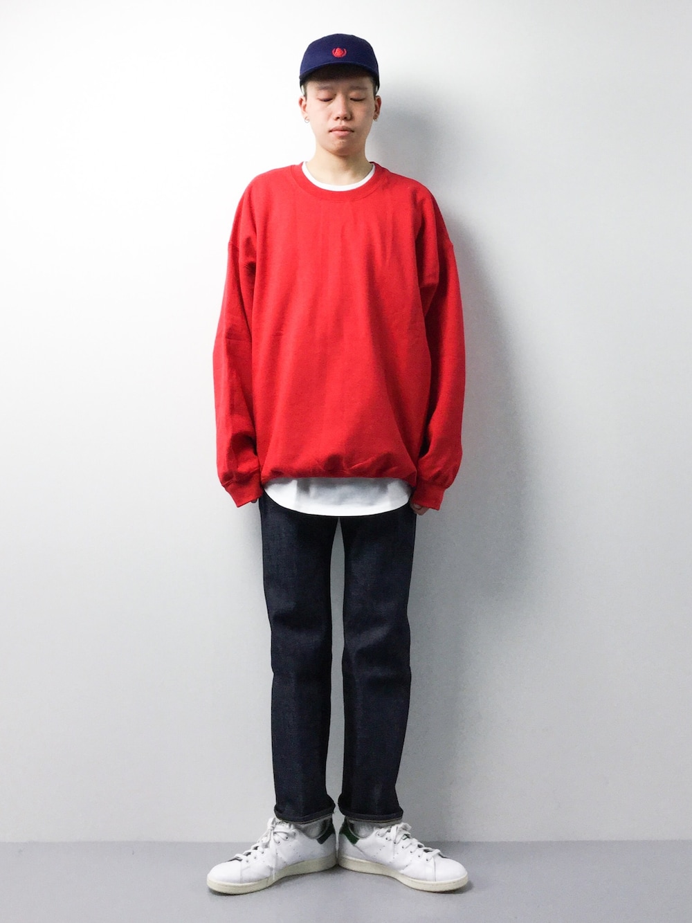 トップスメインの、ストリートコーディネートです。 赤と濃紺という、相性の良い色を合わせました。 ですがこの2色だけでは重たいので、間にレイヤードで白を覗かせ、 それに合わせるかのように、白スニーカーを履いています。 これで、少しは清潔感がプラスされるかと思うので、ポイントで白を使うのはオススメですよ!! ▼staff spec 身長:178cm、体重:55kg 頭周り:57cm 肩幅:40cm、胸囲:80cm、胴囲:82cm ウエスト:80cm、ヒップ:85cm、股下:91cm、もも周り:46cm 靴:26.5cm、足長:25.5cm、足囲:23cm、足幅:10cm、甲周り:25cm