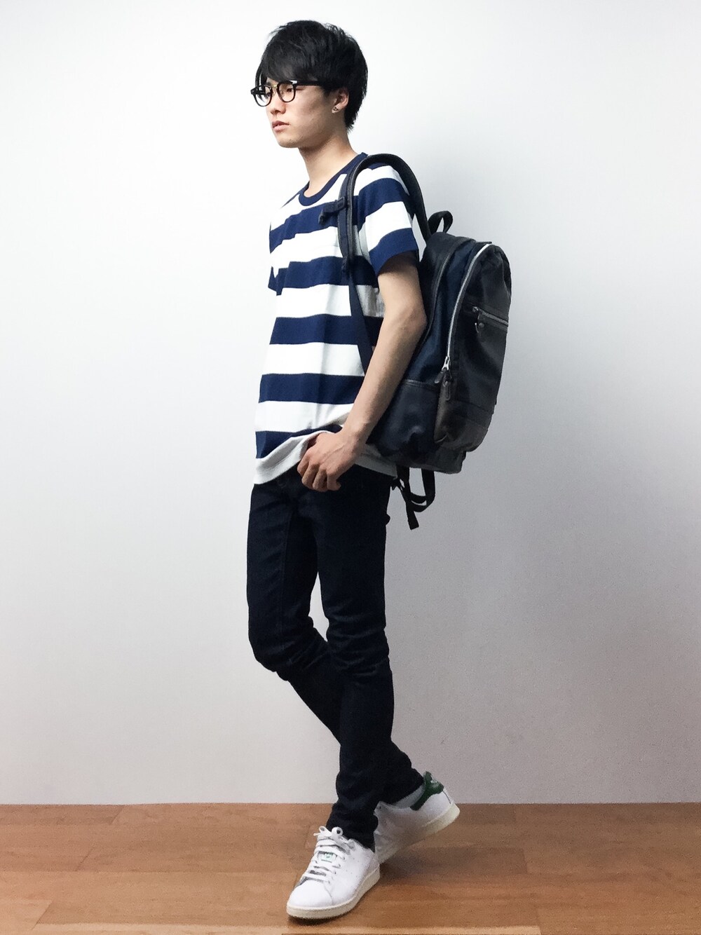 武井一輝(ZOZOTOWN)のTシャツ/カットソー「太ボーダークルーネック半袖ポケT」を使ったコーディネート