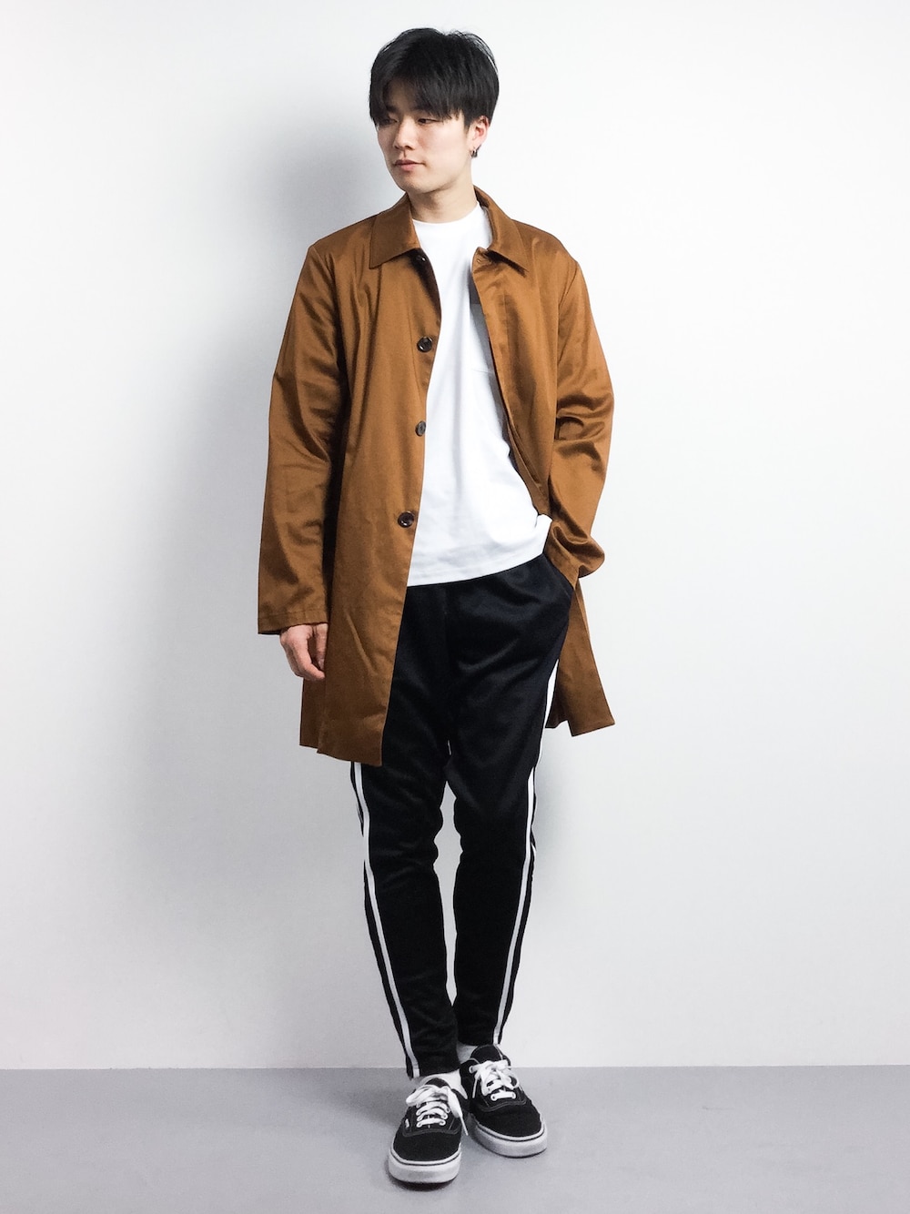 きれいめカジュアル✳︎ ステンカラーコートに白Tでシンプルなスタイリングに。 そこにラインパンツを合わせてスポーツMIXに♪ ▼staff spec 身長:173cm、体重:55kg 頭周り:53cm 肩幅:44cm、胸囲:82cm 、胴囲:65cm ウエスト:78cm、ウエスト(ヌードサイズ):68cm、ヒップ:84cm、股下:77cm、もも周り:46cm 靴 :27cm、足長:27cm、足囲:23cm、足幅:9.5cm、甲周り:23cm