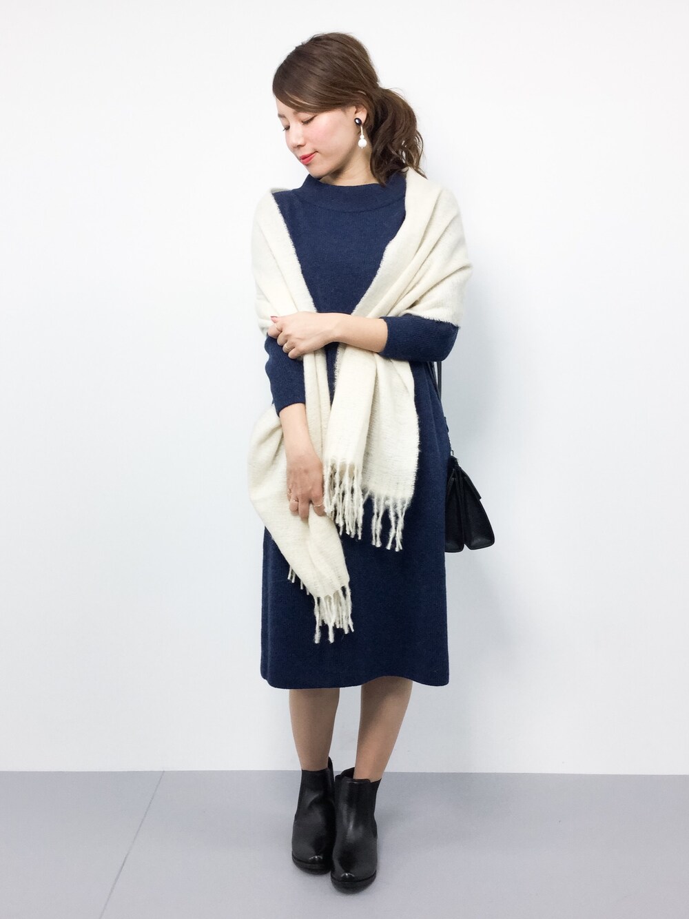 ストール×ワンピース♪ ショートブーツを合わせて、女子コーデ☆ デートにもオススメ◎