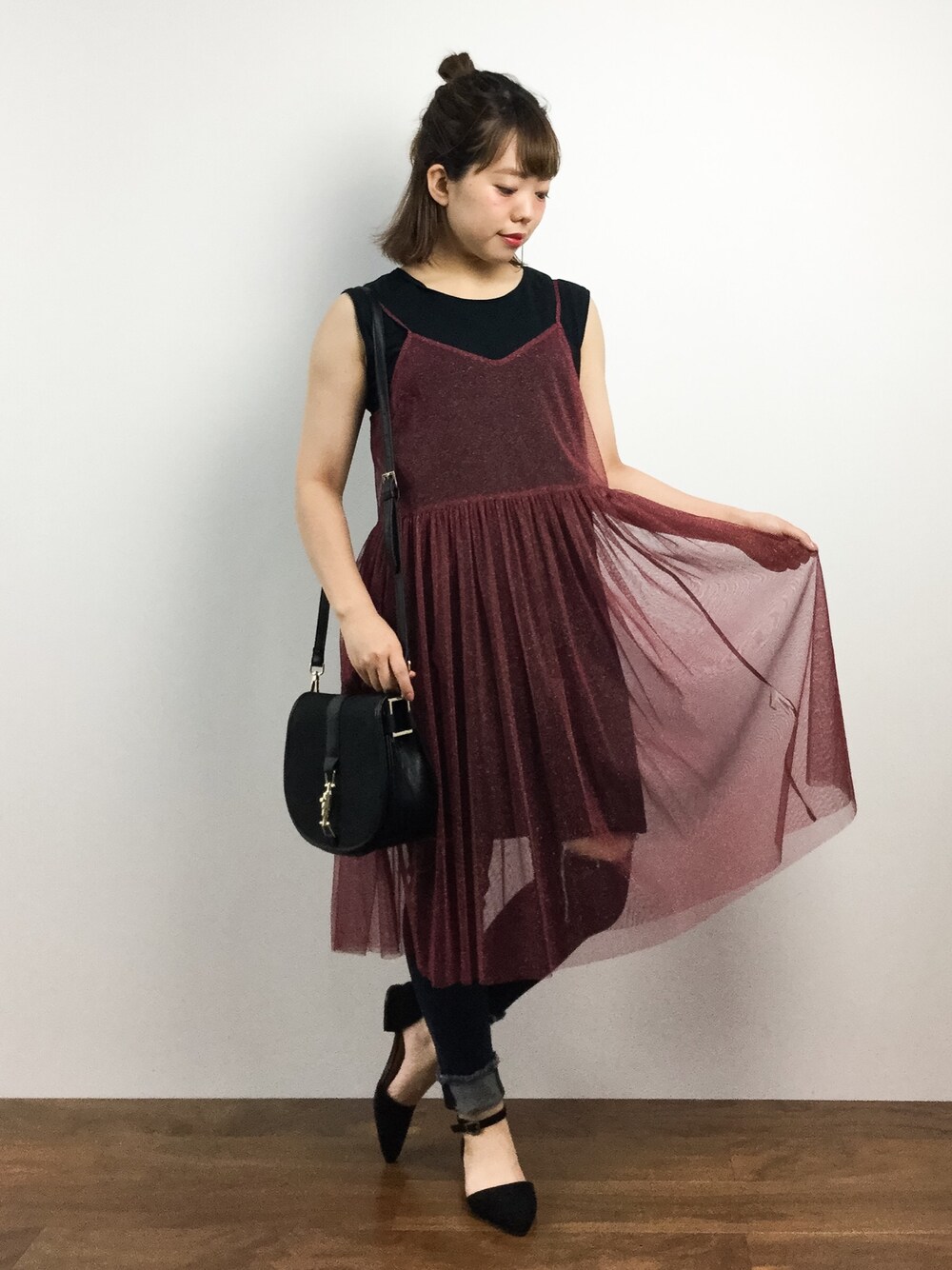 大人カジュアルコーデ キラキラワンピが主役です◎