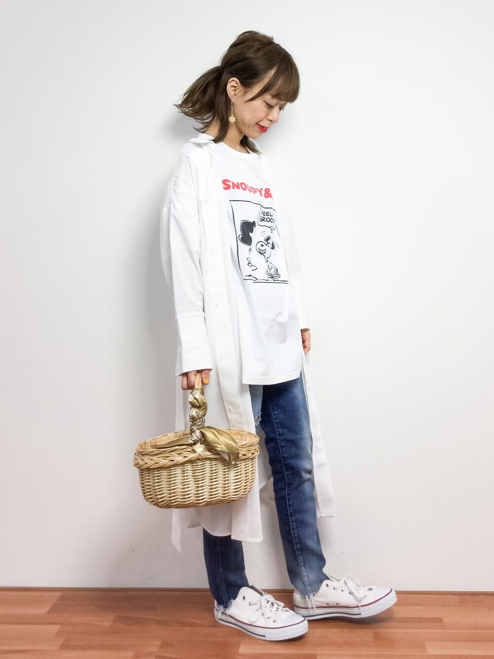 saya☺︎(ZOZOTOWN)のTシャツ/カットソー「【SNOOPY/スヌーピー】×【Ciaopanic】スヌーピーTシャツB」を使ったコーディネート