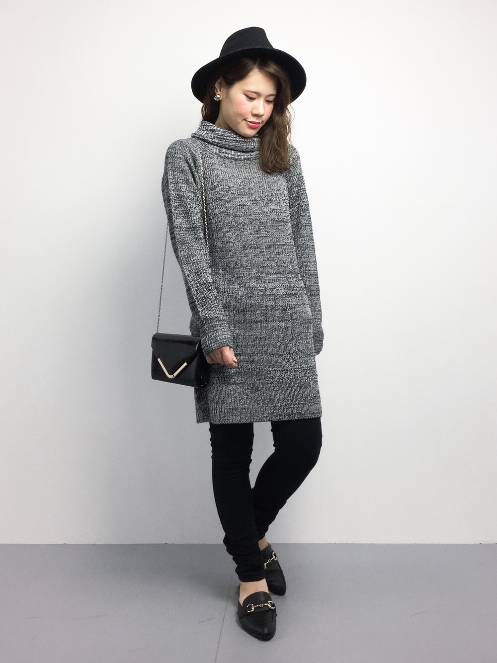 ブラック×グレーでモノトーンコーデ◎ 首元も暖かくてオススメですよ♪