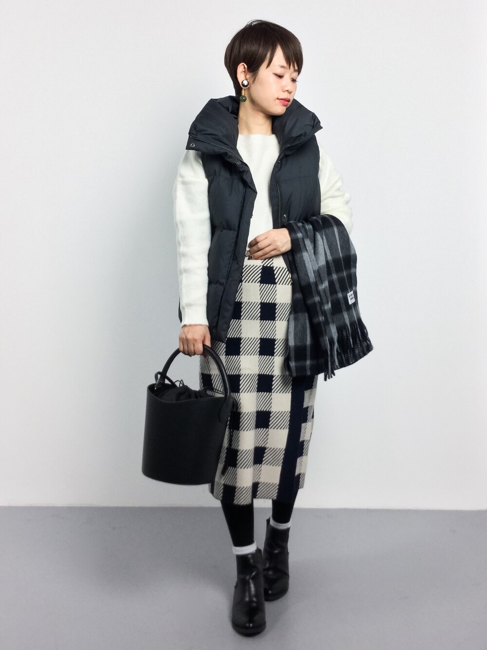 大人カジュアル タイトスカートにダウンベストを合わせました