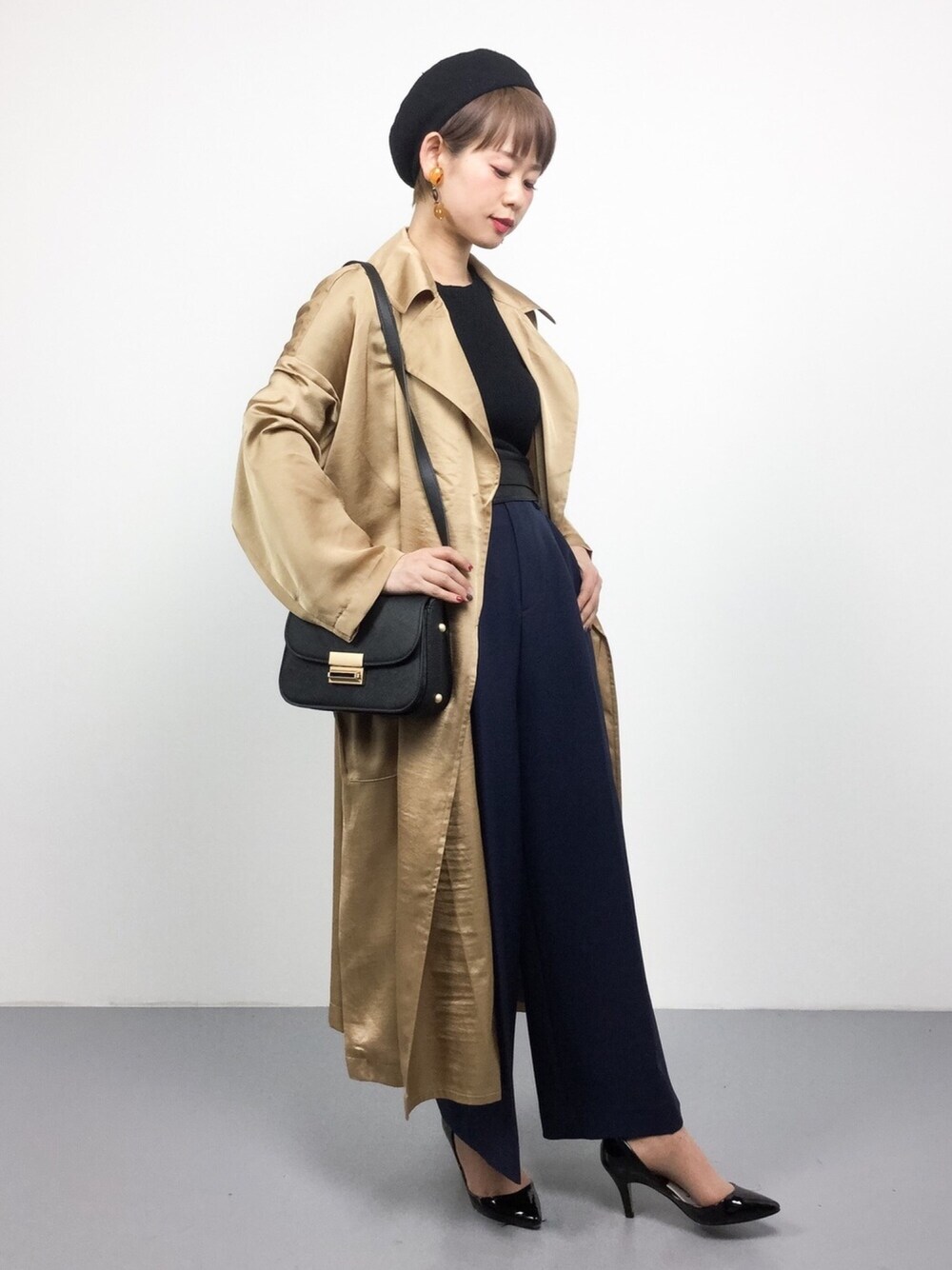キレイめカジュアル ワイドパンツ×サテントレンチコート◎