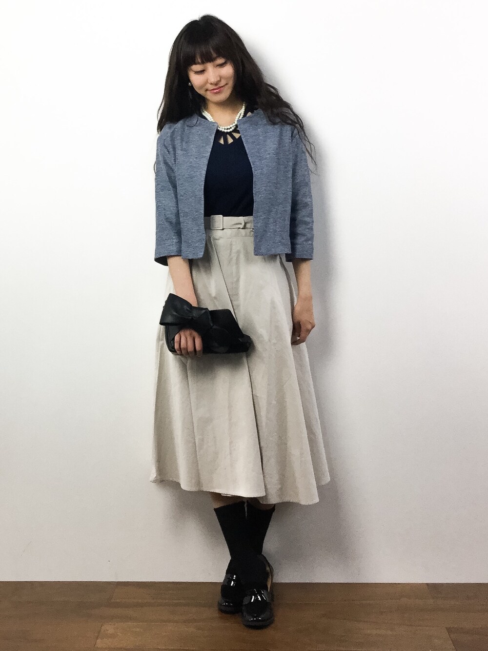 きれいめ女子。 ハイウエストロンスカに丈感短めなジャケットを合わせてスタイル良く見せ♡