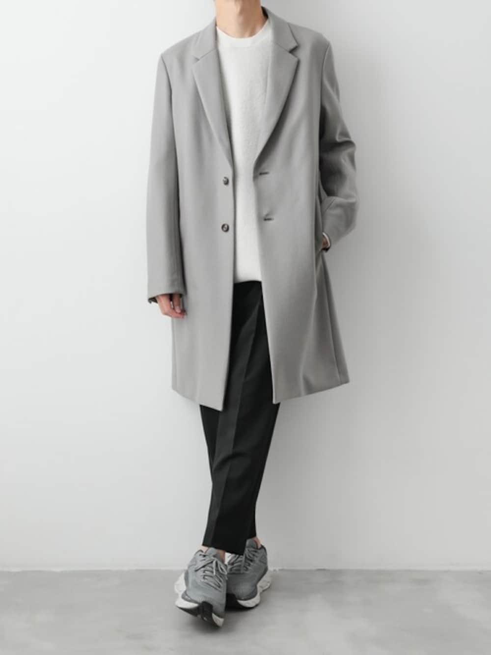 AT_MM(ATTACHMENT)のチェスターコート「ダブルメルトン シングルブレステッドコート / WO DOUBLE MELTON TAILORED SINGLE BREASTED COAT」を使ったコーディネート