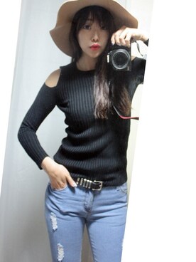 「アイテム(Tシャツ/カットソー、ブラック系)」を使った、jungさん(レディース)の夏コーディネート