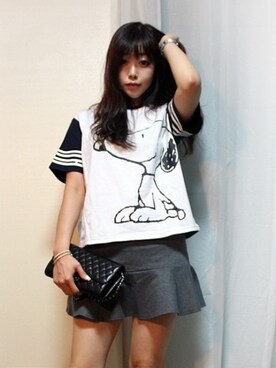 「mickey(Tシャツ/カットソー、グレー系)」を使った、jungさん(レディース)の夏コーディネート