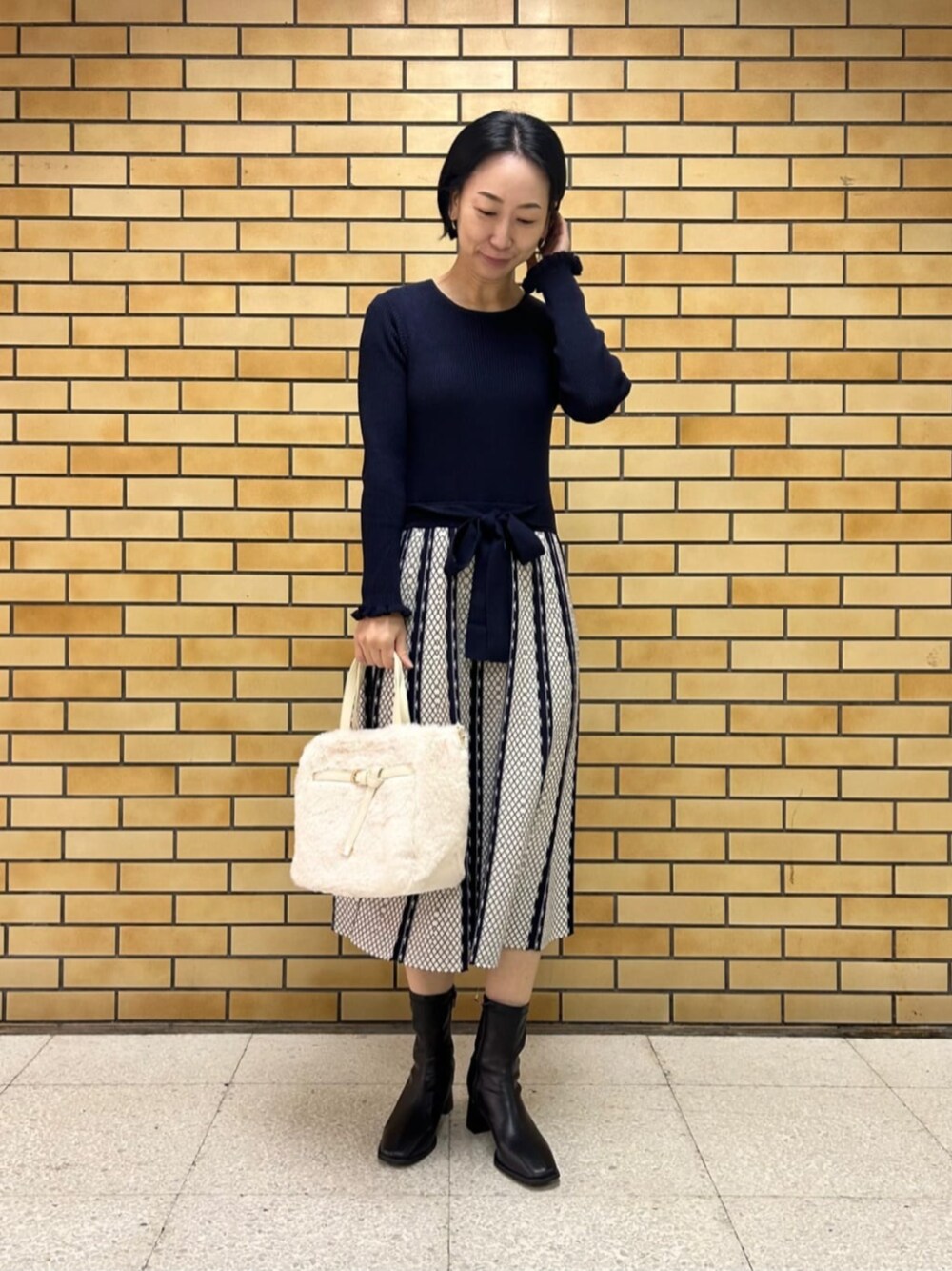 ITS'DEMOスタッフ(ITS'DEMO)のブーツ「◆【履き心地柔らか/太めヒール/M・Lサイズ展開】ラインヒールブーツ」を使ったコーディネート
