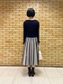 一枚でサマ見えする美シルエットのワンピース。 トップスはリブ編みで身体のラインにやさしくフィット、スカート部分はジャカード編みのしっかりとした肉感。 袖口のフリルでさりげなく大人の甘さをプラス♪