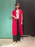 接触冷感!吸水速乾!洗濯機で洗える! 快適でお手入れ簡単なラク服シリーズのワンピを羽織として着用し ピンクのカラーを差し色にコーディネートしてみました。 【サイズ感】 丈間長めです。 167cmが着用で、足の脛くらいまで長さがございます。 お袖は短めです。 【素材感・着心地】 サラッとしておりとても軽いです。 涼しい素材となっております。 【おすすめポイント】 ボタンを全て閉めてワンピース、 ボタンを全て開けて羽織と、2wayで楽しめます。