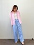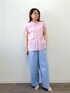 スタンド襟のフリルで少し可愛さのあるブラウス。 肩幅広めの私で肩周りはちょうどよいサイズ、見頃はゆとりがありました。 着るとお尻まで隠れるので、パンツスタイルでも安心感があります。 前あきタイプなので羽織として使うと抜け感が出るので、また違った雰囲気になります。