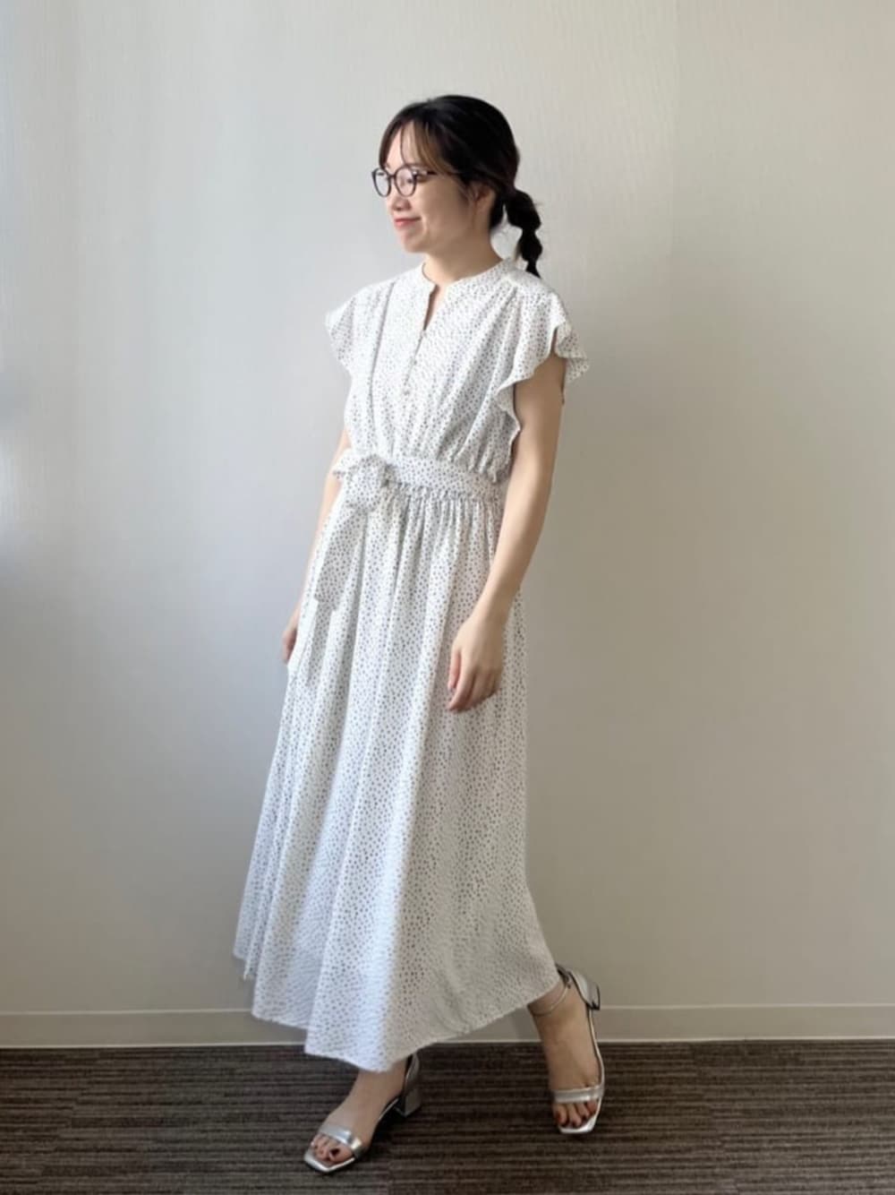 ITS'DEMOスタッフ(ITS'DEMO)のワンピース「【手洗い可】フリル袖ブラウジングワンピース」を使ったコーディネート