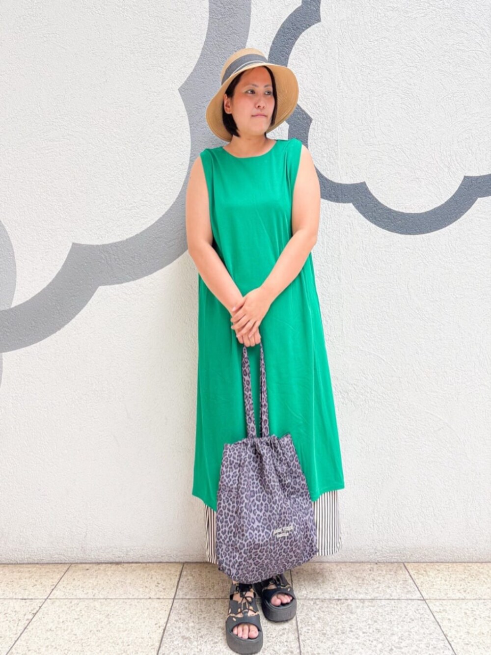 【着心地・サイズ感】 ワンピースはゆったりしたサイズ感です。体のラインも拾わず体型カバー◎ 着丈もしっかりある為、長身の方にもおすすめです。 【オススメポイント】 1枚でさらっと着たり、パンツをレイヤードしたりと、コーディネートを楽しむことができるシンプルなワンピースです! 冷感素材でフィット感のあるデザインではないので、この夏涼しくお召しいただけます。