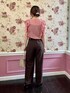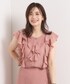 フリルが華やかなブラウス。 フリーサイズでちょうど良いサイズ感でした。 落ち着いたカラーとシアー感のある素材で、夏~秋にかけておすすめのアイテム。 濃い色のパンツと合わせると大人でも可愛くなりすぎずに着られます。