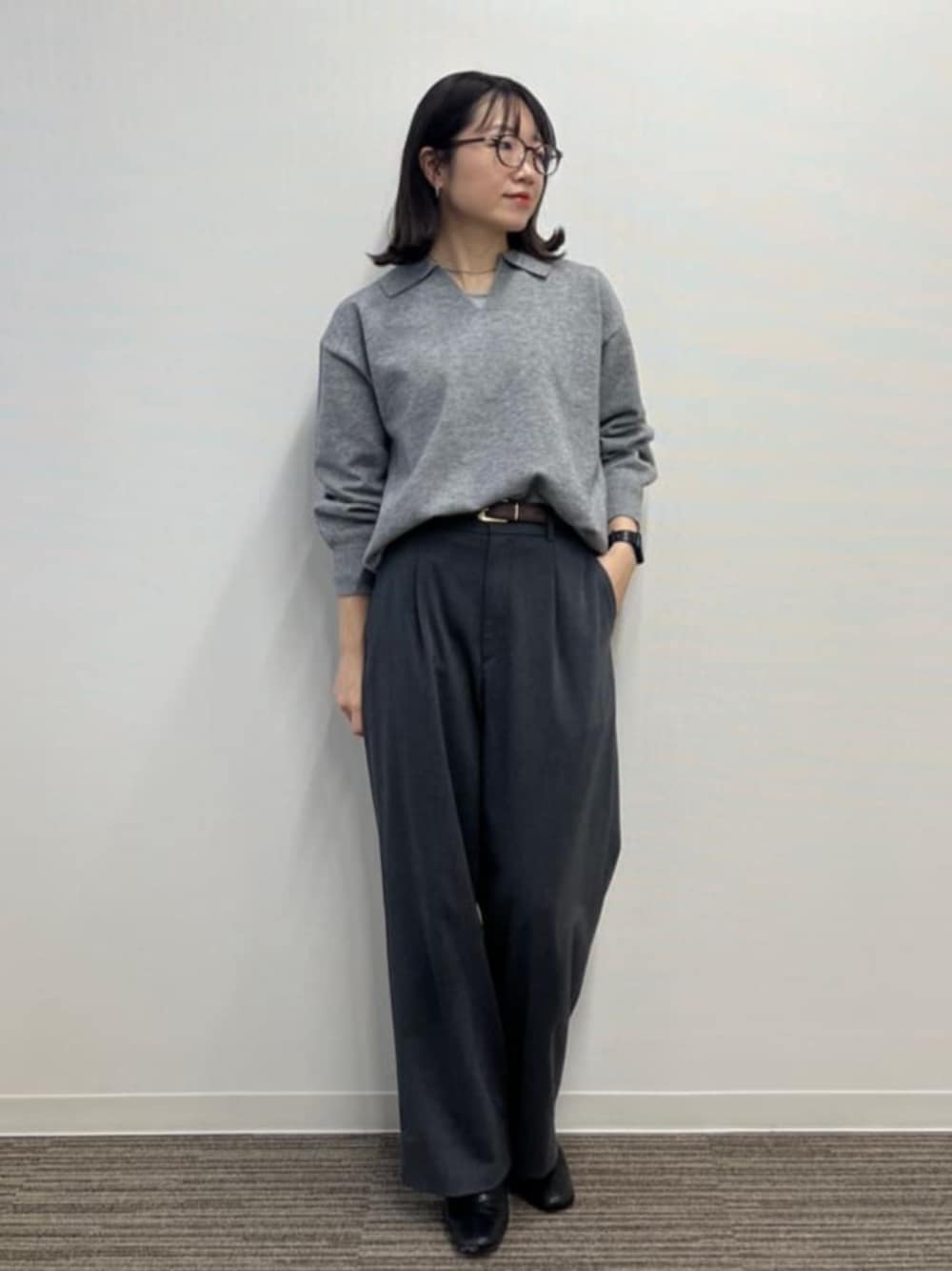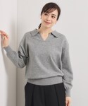 トレンド感のある襟付きニット。 程よい襟開きで顔まわりがスッキリして見えます。 見頃や腕周りはゆったりしていて動きやすく、肌当たりがやわらかで着心地◎