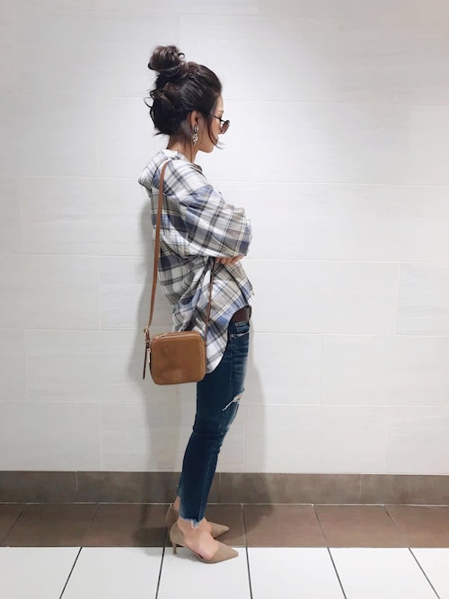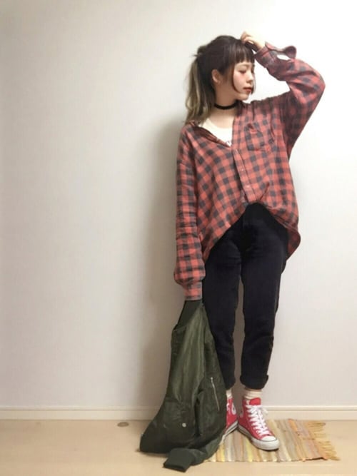 チェックシャツを女性らしく着こなすには適度に着崩すことがポイント。タートルネックやロンTなどと合わせて、ゆるっと肩を落としたり、ベルトでウエストマークをしてシャツを変形させるのもおすすめ。