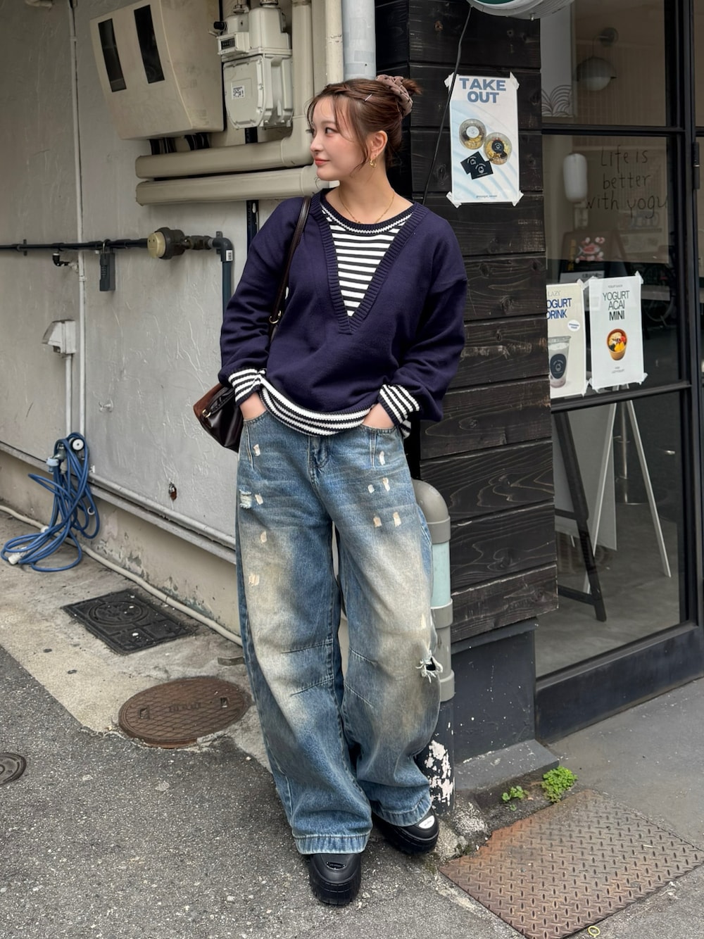 SAKURAのスニーカー「エア ジョーダン 1 ブルックリン LOW ウィメンズシューズ / Air Jordan 1 Brooklyn Low Women's Shoes HF3184-001 Black」を使ったコーディネート