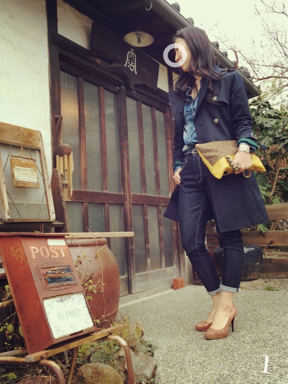 初投稿♡ いつまで続くやら… 初デニムonデニム ♡ 正解が分からない…笑 古民家カフェの前で 失礼いたしました💦