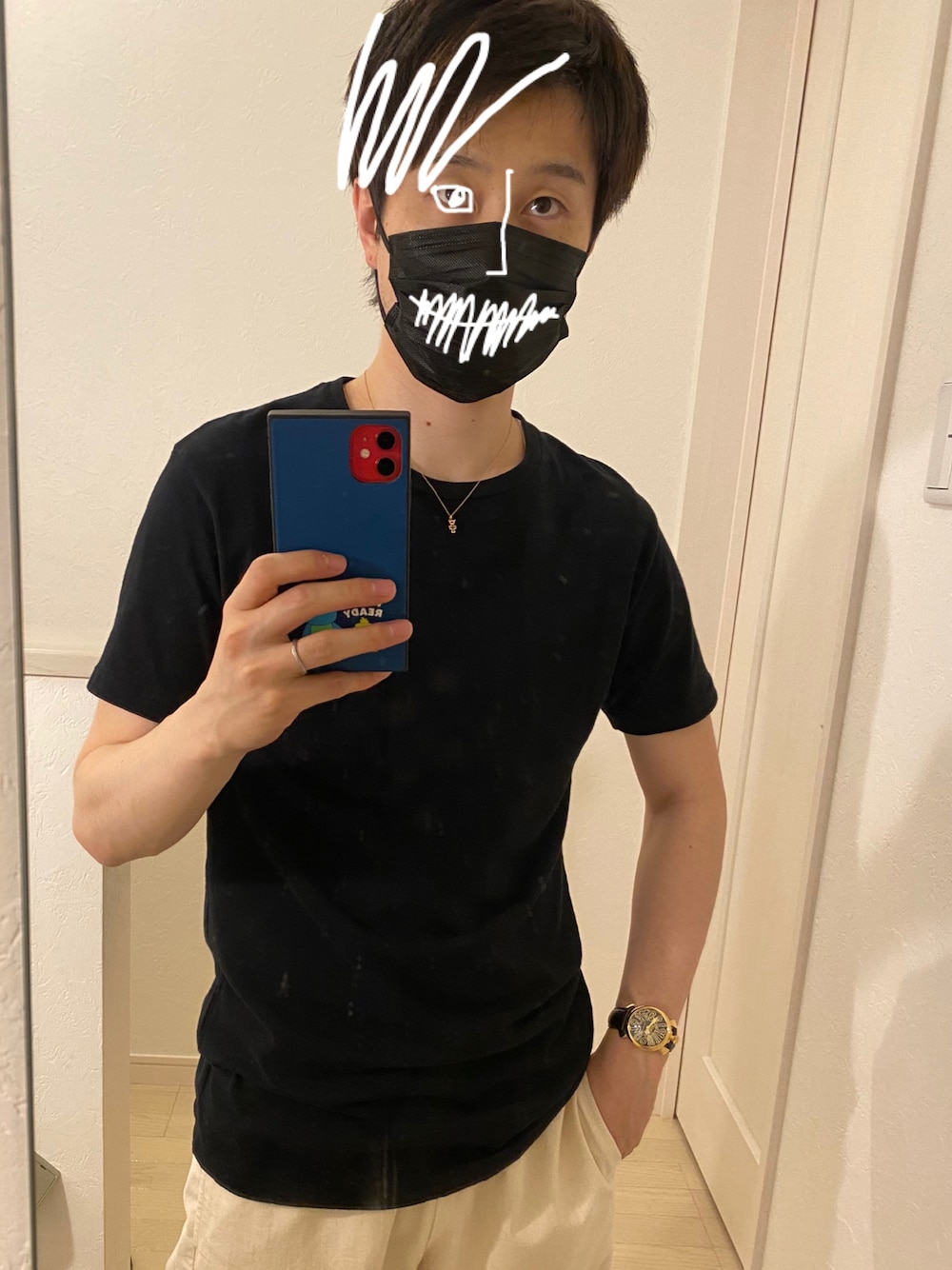 朝時間がなくて、ぱぱっとコーデ! 白のシェフパンツと黒のカットソーでシンプルに✨ ロンハーマン×ヘインズの黒シャツを使ってみました🌈