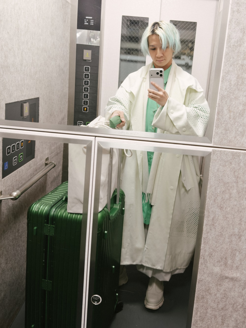 飛行機に乗る時は、いつもキャリーに合わせてグリーンを纏うのがマイルール More photos pls go to Insta: @felicis.style