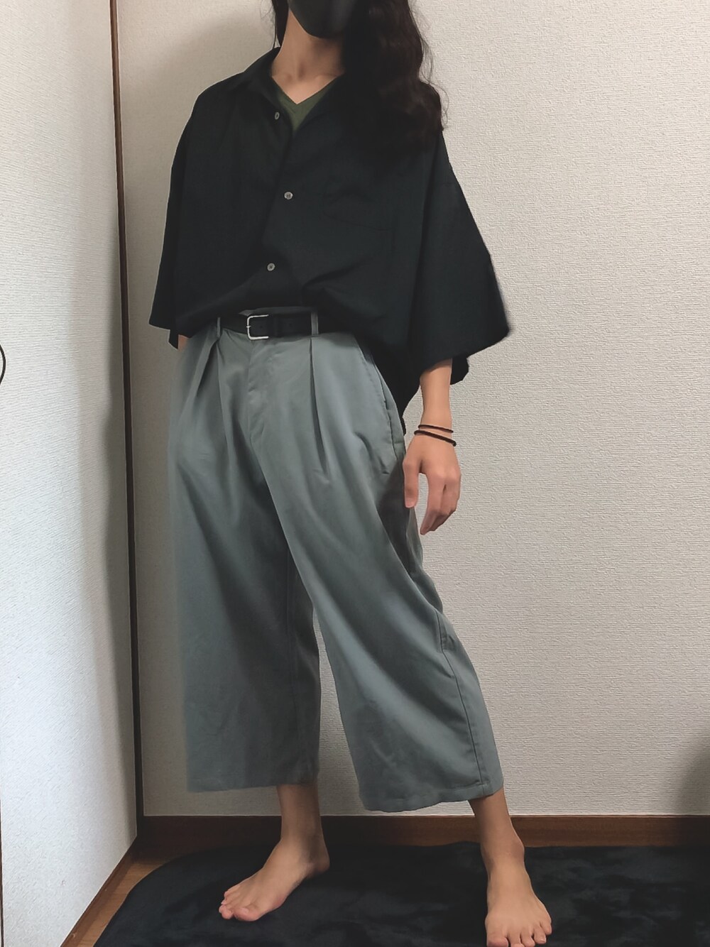 カーキ×黒×ライトグレー カラーパンツ大好き。