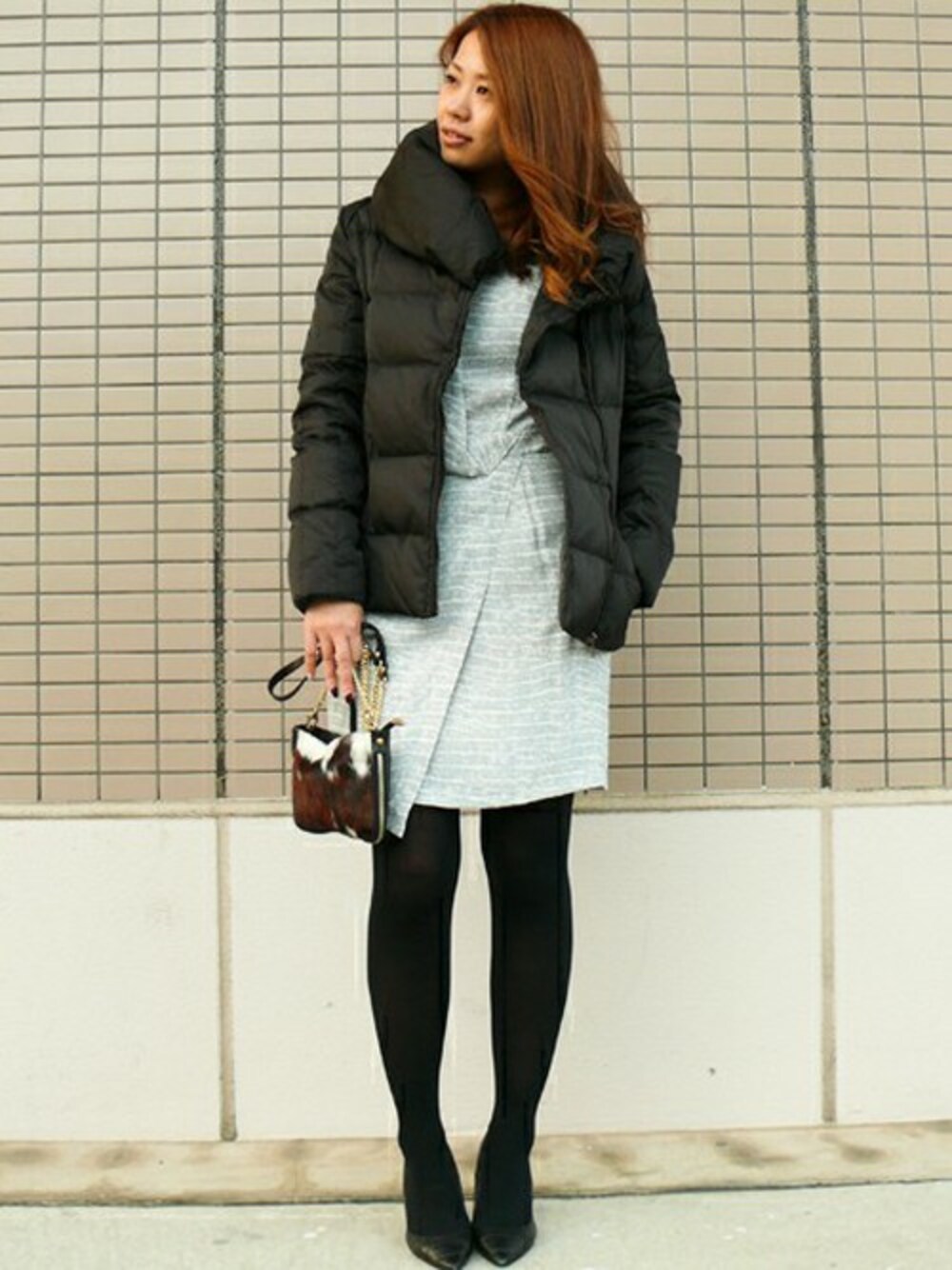 クロコダイル柄が印象的なワンピースコーディネート♡ 華やかなブルーが暗くなりがちな冬のスタイリングを 明るい印象に演出します♪ 程よい丈感で上品さもプラス! アウターはかなり温かいのでこれからの季節に大活躍間違いなしの1枚です♡