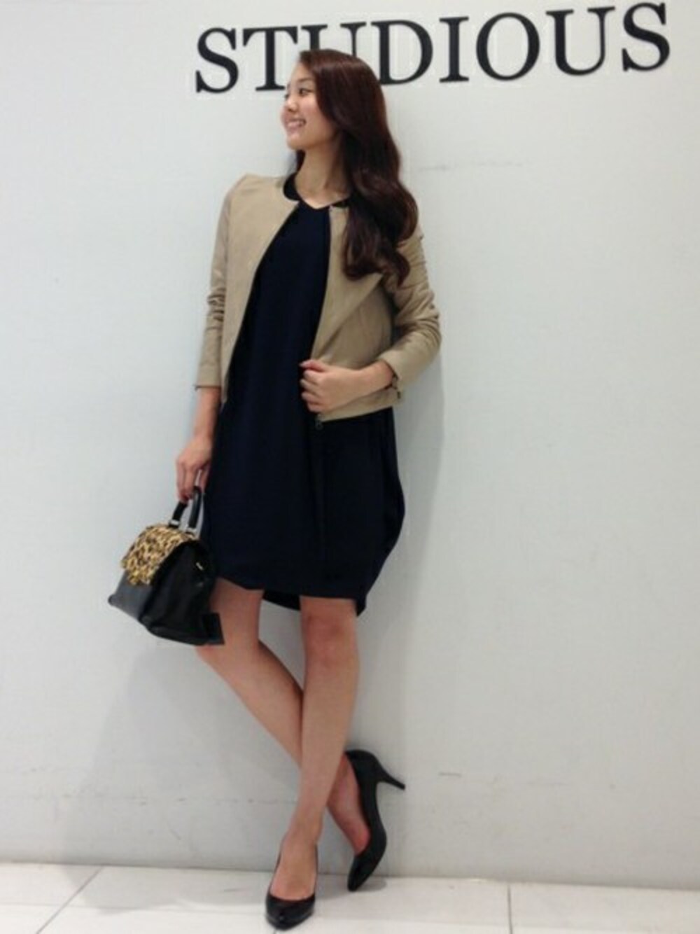 程よいルーズ感が人気のインタックワンピースに人気のノーカラーレザーを合わせた1枚。 カジュアルにも、フォーマルにも合わせられるアウターです。
