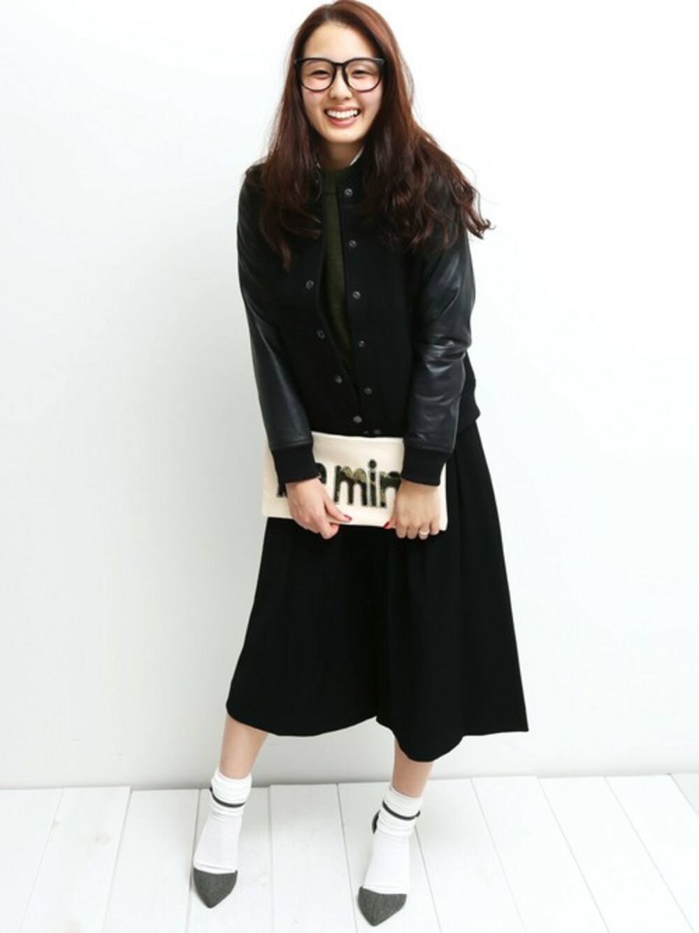 トレンドのガウチョパンツはコンパクトなスタジャンとあわせれば挑戦しやすいスタイリングに。 絶妙な丈間のパンツはソックス×ヒールの相性バツグンです。