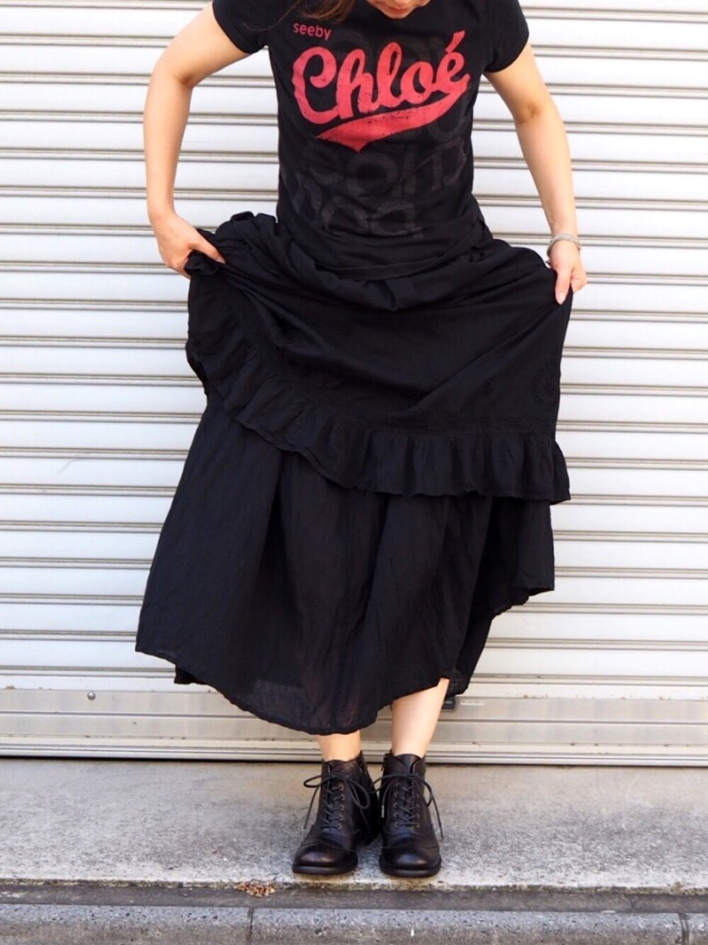 また暑くなっちゃったけど、 冬物の撮影していたので、 ブーツな気分でございます。 毎日の気分をコーデで表現しております。 暑くてトロ〜とした気分を黒で引き締めております。 でもラクチンコーデな。 信頼関係バッチリの定番ブーツで、 体重を預けております🙃