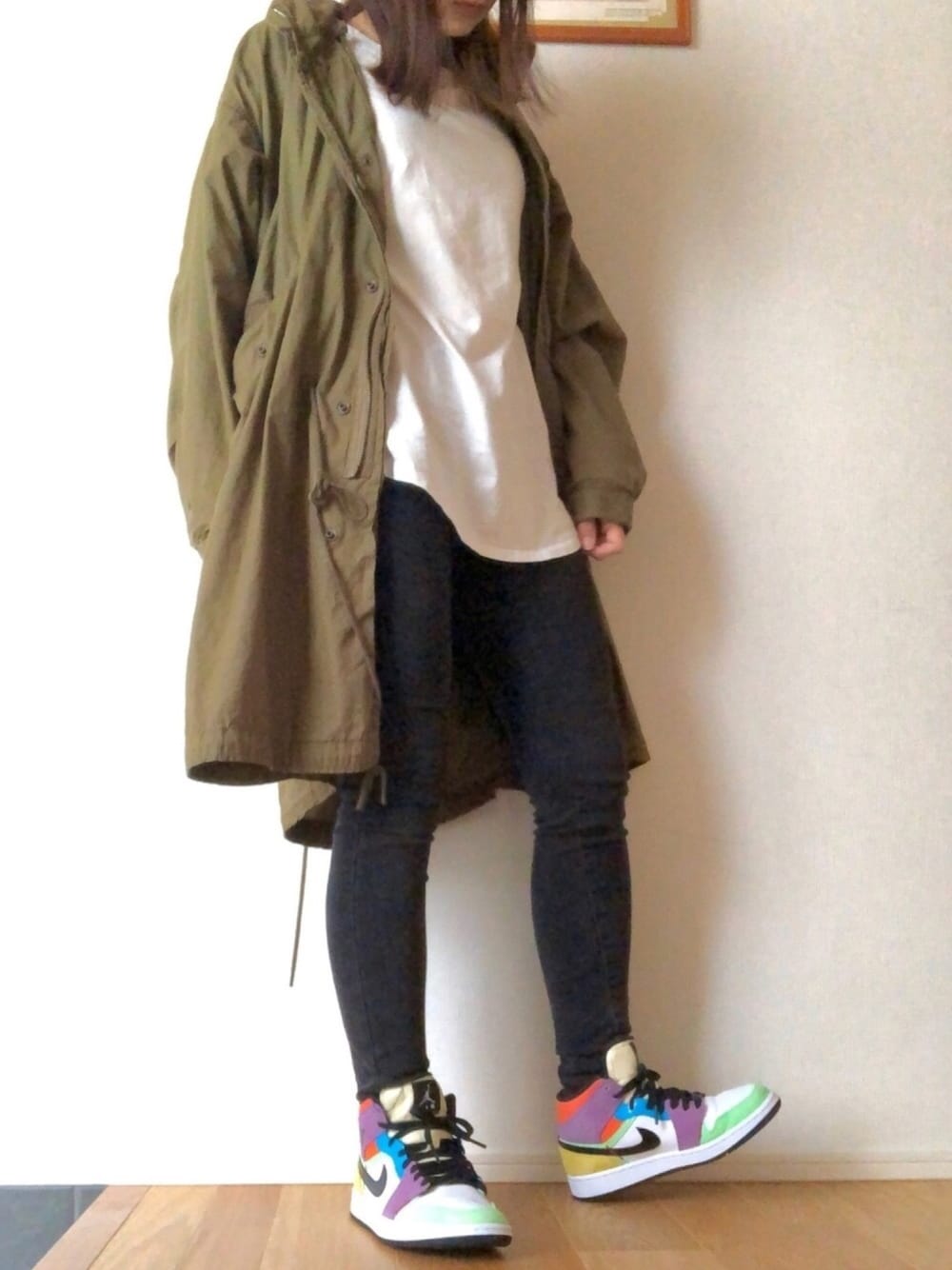 覚書🖋 何って、めでたく手に入れたAJ1を履きたかった! って言うだけのコーデ。 カラーリングがほんとかわいい😍 スニーカーが主役!! でも、goaのモッズコートが春も使えるって事も今日分かって、得した気分。 内のライナーを取り外したら、かるーいアウター。発見👀