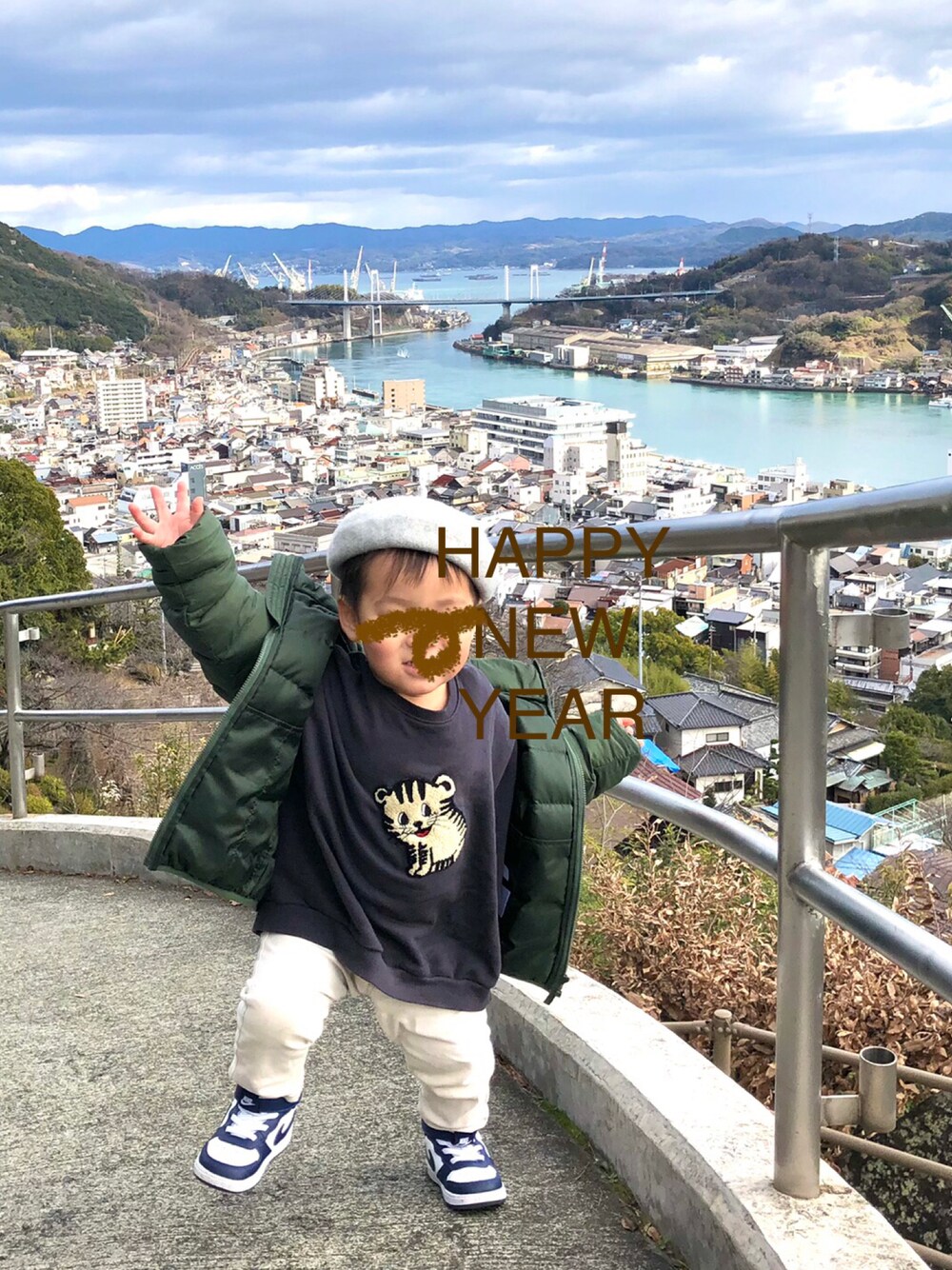 あけましておめでとうございます🎍 初詣コーデ 寅年だから虎柄🐯 安易! 虎ポーズな息子さんのショット📸