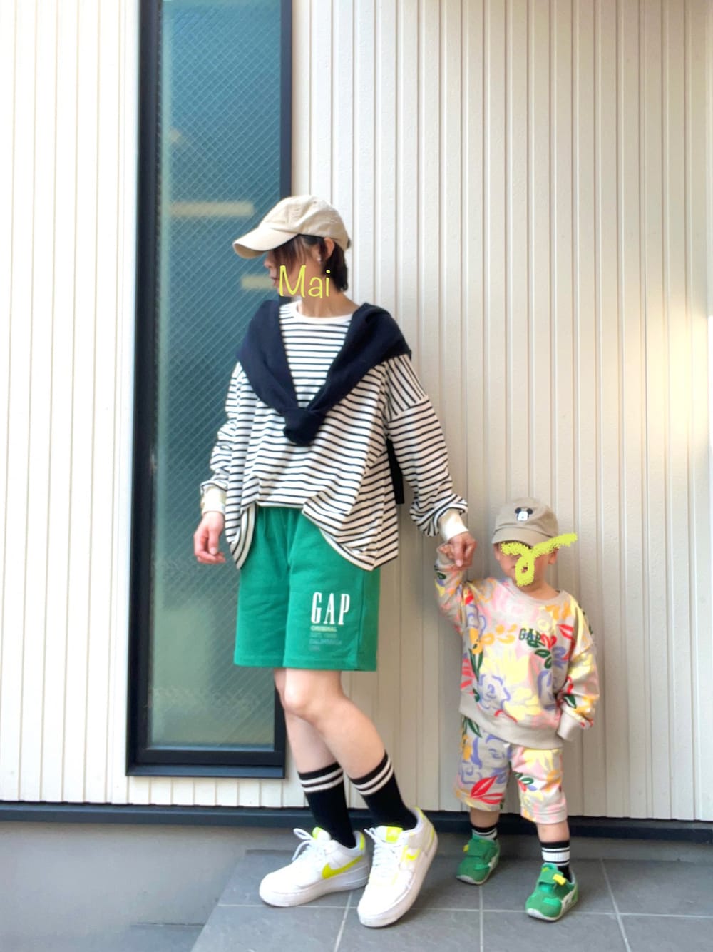 覚書🖋 一気に暖かくなって、短パンがちょうどいい日もある! ずっとやりたかったリンクコーデ🟢🌼 この日は父ちゃんもGAPの短パンでした🩳