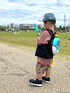 覚書🖋 公園で水遊び⛲️ UNIQLOのエアリズムコットンクルーネックTシャツ、色多くてどれ買うか迷ったけど、ピンクいーね。