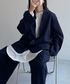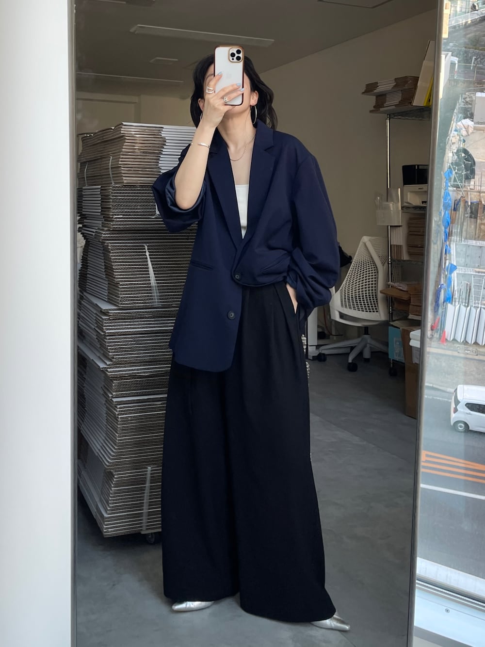 ネイビー×ブラックでキレイめですが インナーでラフな印象に💞 身長:155cm Instagram:wee9s.official_