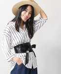 今回は【サテン開襟5分袖シャツ】を使ったコーデをご紹介! 今季はスキッパーシャツの人気が急上昇!! ゆったりとしたサイズ感がほど良い抜け感を演出し、ムードのある印象に♪ トレンドのサッシュベルトでウエストマークすることで、 コーデにメリハリが付き、スタイルUP効果も期待◎ キッチリしがちなシャツスタイルも、デニムと合わせてカジュアルダウンに★ 是非、この機会にチェックしてみて下さい!
