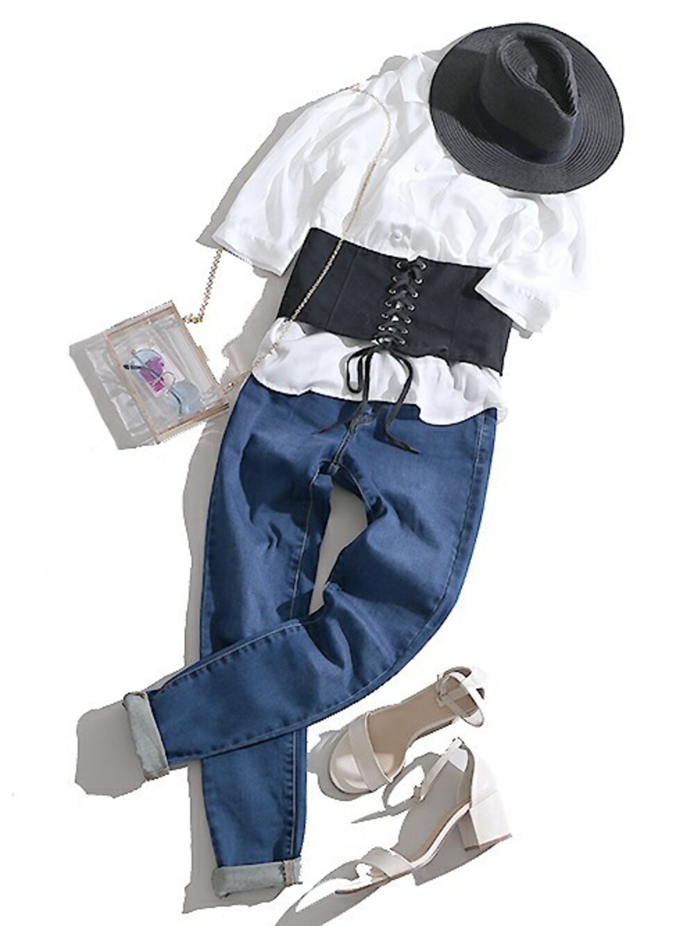 今回は【サテン開襟5分袖シャツ】を使ったコーデをご紹介! 今季はスキッパーシャツの人気が急上昇!! ゆったりとしたサイズ感がほど良い抜け感を演出し、ムードのある印象に♪ トレンドのコルセットベルトでウエストマークすることで、 コーデにメリハリが付き、スタイルUPに◎ シンプルな中にも、小物で遊びを効かせた大人カジュアルスタイルです☆ 是非、この機会にチェックしてみて下さい!