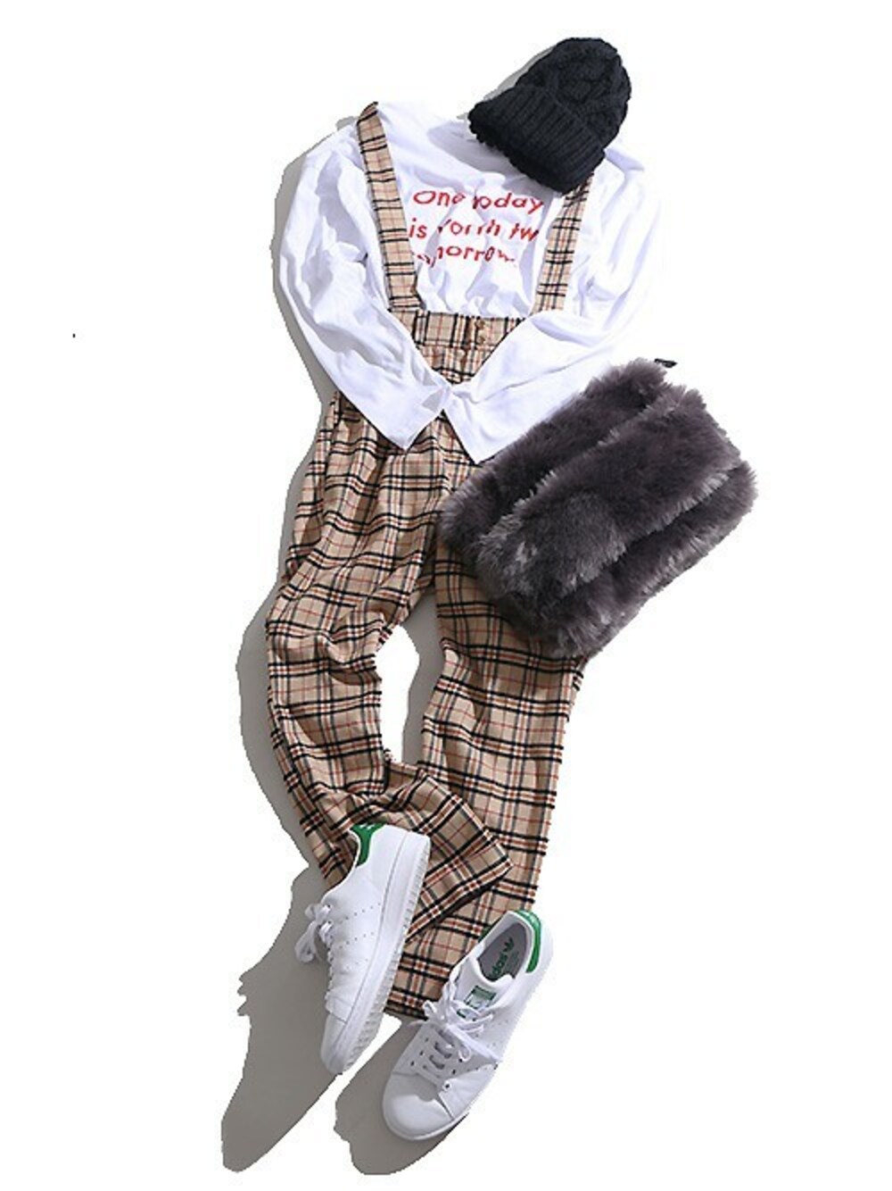今回は大人でも着られる秋のカジュアルスタイルをご紹介☆ サスペンダー付きのチェックパンツはタイトすぎず広がりすぎないシルエットで着心地が良く、ハイウエスト仕様で足長効果も期待できます◎ また、サスペンダーは取り外し可能なので普通のパンツとして使えるのも嬉しいポイント☆ インナーは無地でも全然OKですが、シンプルすぎて寂しい・・・と思う方はロゴやワンポイントなどもオススメ! キレイなIラインシルエットになるので、小物はファーやニットなどボリューム感のあるアイテムを選びましょう!! 是非、この機会にチェックしてみて下さい♪